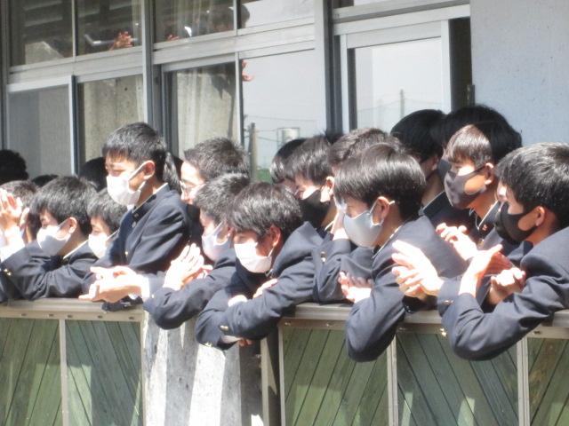 4月15日(木)昼休み、空手道部が男子団体形を披露しました。