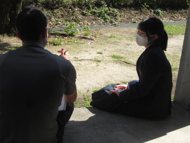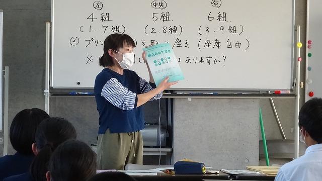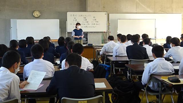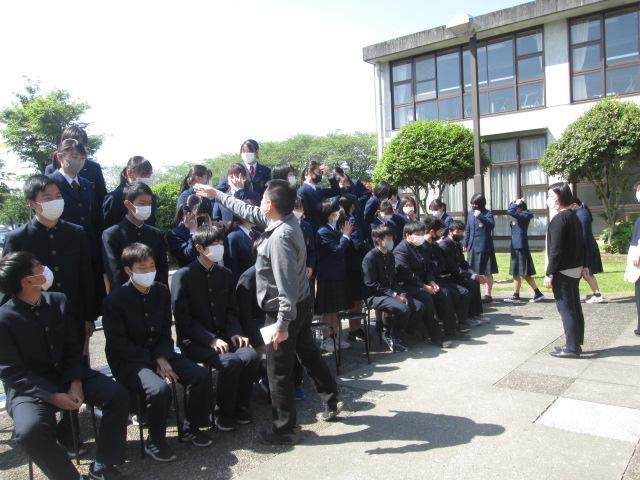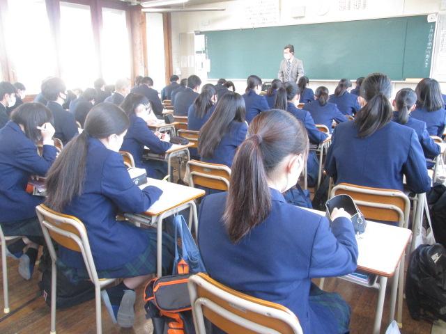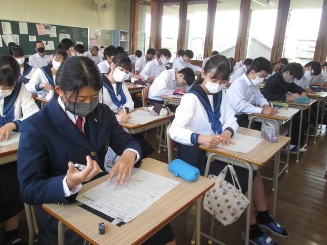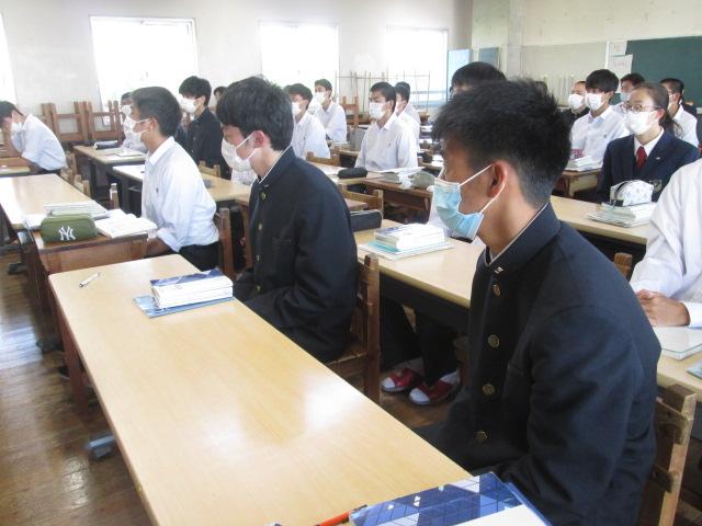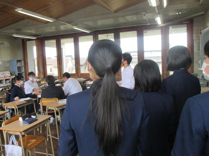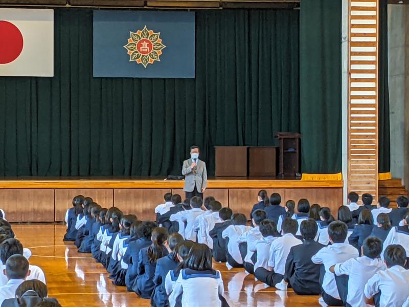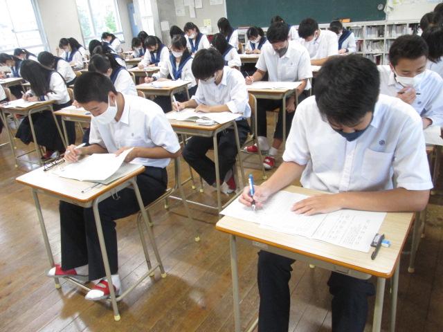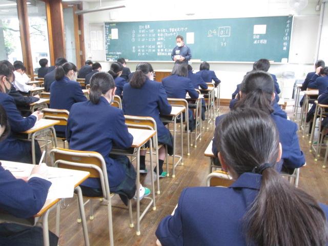 「友人がいけないことをしているときに、良い方向に導く声掛けができるかが重要です。良い方向に成長できる集団であってほしい。また、今回の中間考査はチャンス。3教科で範囲も狭い。だからこそ理解できないところは質問したり、解決するよう努めましょう。」と話をしていただきました。
