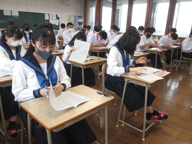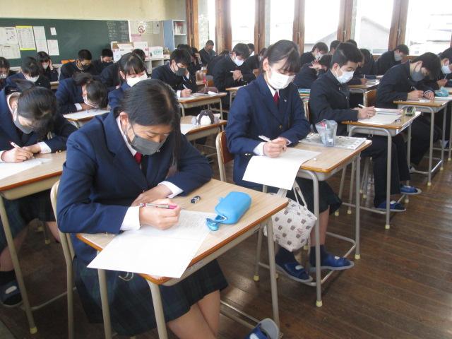4月9日(金)2年生、3年生は整理考査を実施しています。春休み中の学習の成果を発揮してください。