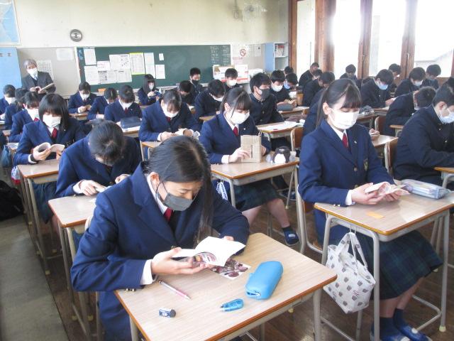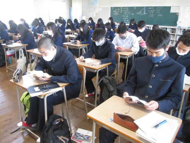 朝課外と同時に朝読書も開始します。全クラス図書館オリエンテーションで話をしているので、読書の大切さは理解してくれていると思います。朝課外が終わって8:20〜8:30の時間に読書に取り組んでください。先輩たちは日常的に朝読書の活動をしているので、朝読書がない8:20からは気を遣って過ごすように。
