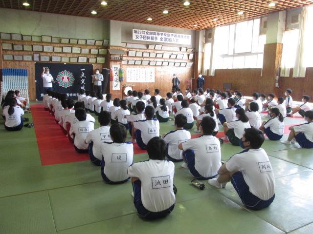 5/1に行われた体育大会で中心となって頑張ってくれた生徒会、応援リーダーへの慰労がありました。