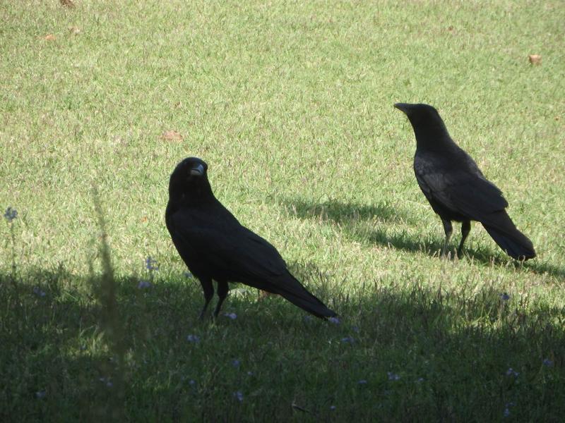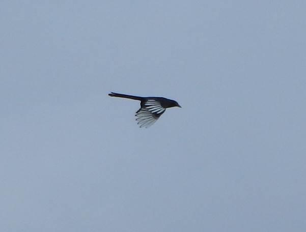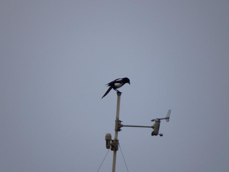体育大会予行の日にカササギが2羽飛んできました。カササギはハシボソガラスより小さくて尾が長く、「カチガラス」とも呼ばれます。時々、鳴き声は聞こえていましたが、姿を見たのは久しぶりです。