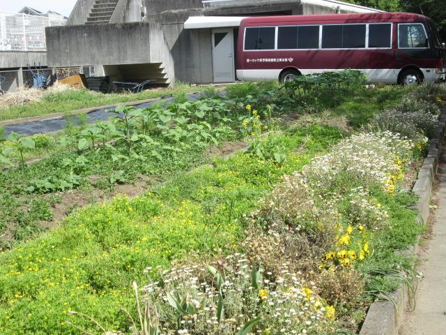 本校は、「熊本県茶業試験場跡」に設置され、今も茶畑が残っています。
