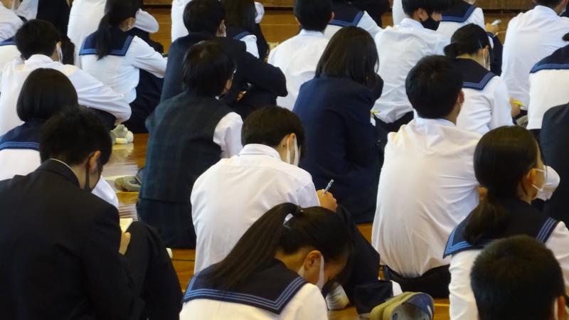 今年度は、マナーの向上とスマホとの付き合い方を中心に指導を進めていく。特にマナーについては、自分でTPOに応じて判断し、最適な態度・行動がとれるようになって欲しい。自ら正しいマナーを身につけ、その言動で他人から信頼される人となって欲しい。最後に交通事故には十分気をつけること。君たちには被害者にも加害者にもなって欲しくない。
