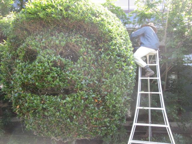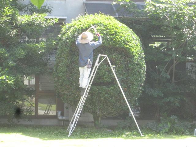 5月13日(木)校庭のサザンカの剪定(散髪)を行いました。