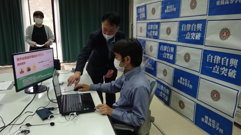 3年生の保護者を対象とした奨学金等進学資金ガイダンスを動画配信にて行います。準備の様子です。