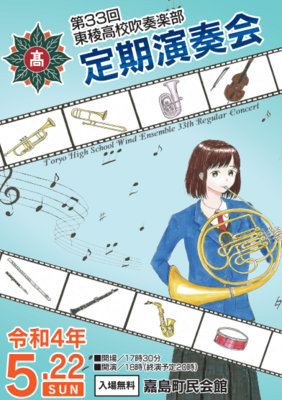令和4年(2022年)5月22、嘉島町民会館で第33回東稜高校吹奏楽部定期演奏会を開催します。3月に予定していた演奏会がやっとできることになり、部員一丸となって最後の仕上げをしています。当日はお客様に楽しんでいただけるよう、精一杯演奏します。御来場、お待ちしています。