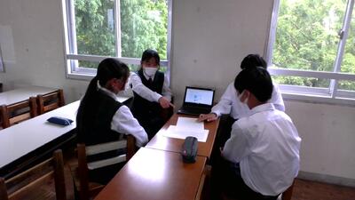 5月20日(金)、中間考査が終わった午後、KKTテレビタミンから本校図書委員会アーカイブス班が取材を受けました。