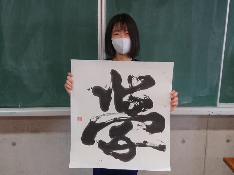 第2回一字書大会を部活動指導の吉田先生に審査いただき、成績がでました。創意工夫ある作品が完成しました。第一席は裏打ちして、書道教室入口に掲示しています。