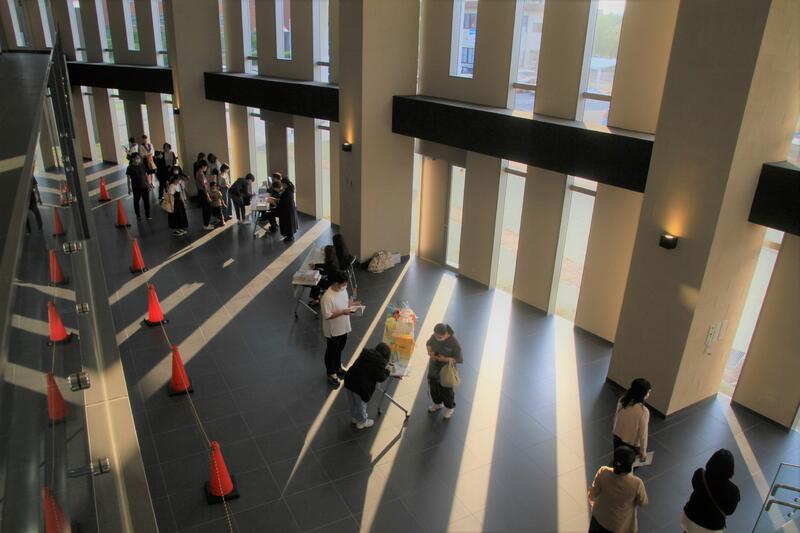 5月28日、学園大学付属中学校のアトリウムで合唱団「手と手」の合同練習が行われました。普段は少人数でコツコツと練習をしていましたが、今日はピアノに合わせて思いっきり「落葉松」を歌うことができました。