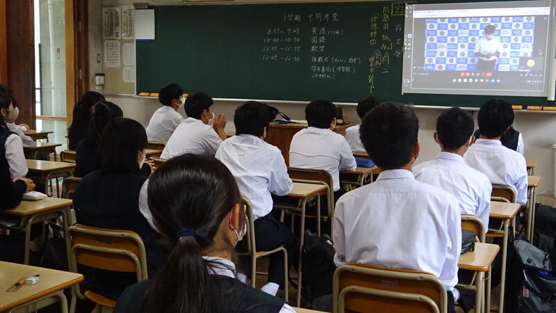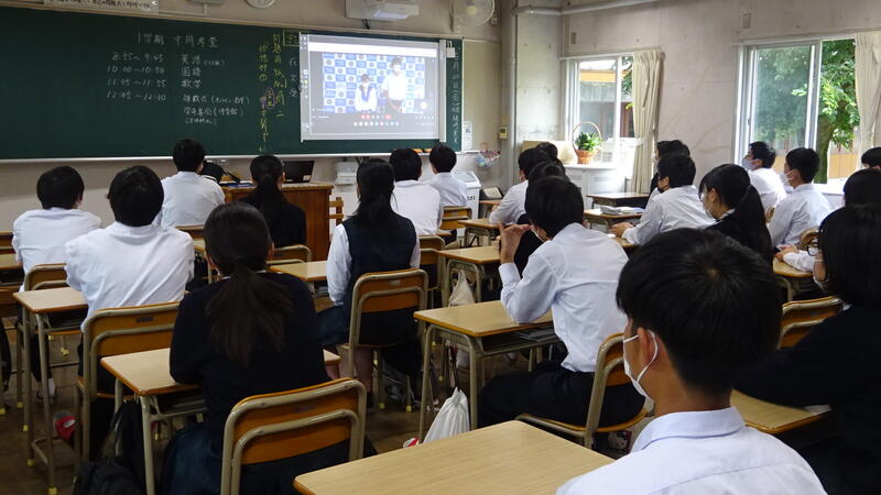 多くの先生方が見守る中、生徒たちは落ち着いて授業を受ける様子が見られました。