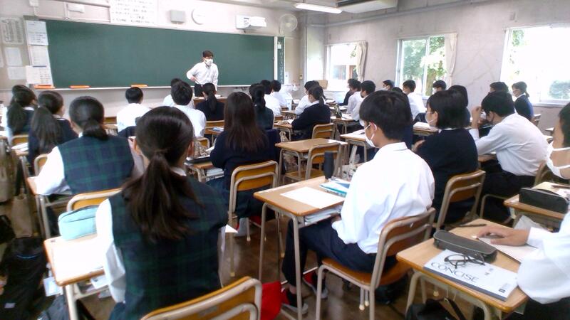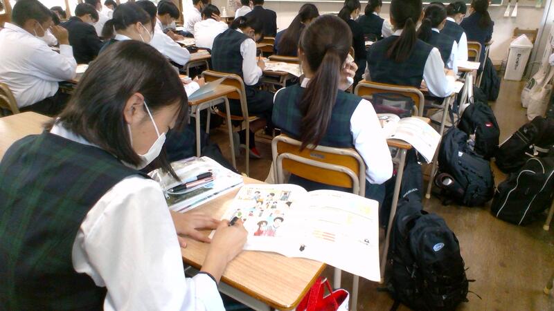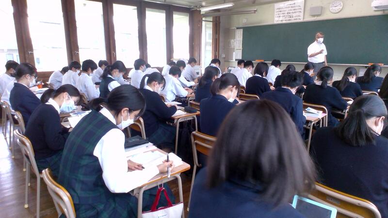 数学・・・園田先生と生徒たちみんなでコミュニケーションを取りながら、解き方を確認していました。顔を上げて真剣に学び、問題に取り組む姿が見られました。