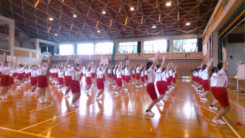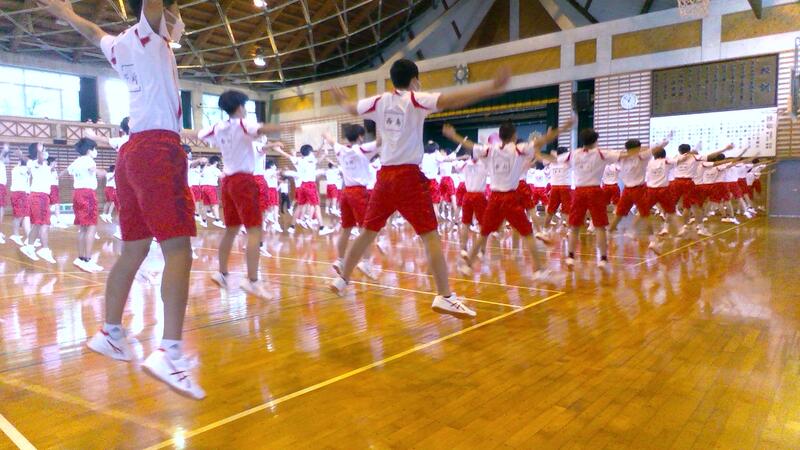 昨夜からの雨により、外での実施は困難でしたが、午前中は体育館を使った予行練習を行いました。