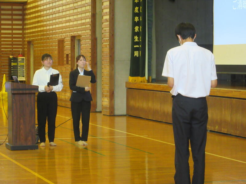 今回は進路係が整列やマイク運搬、司会や謝辞を行いました。