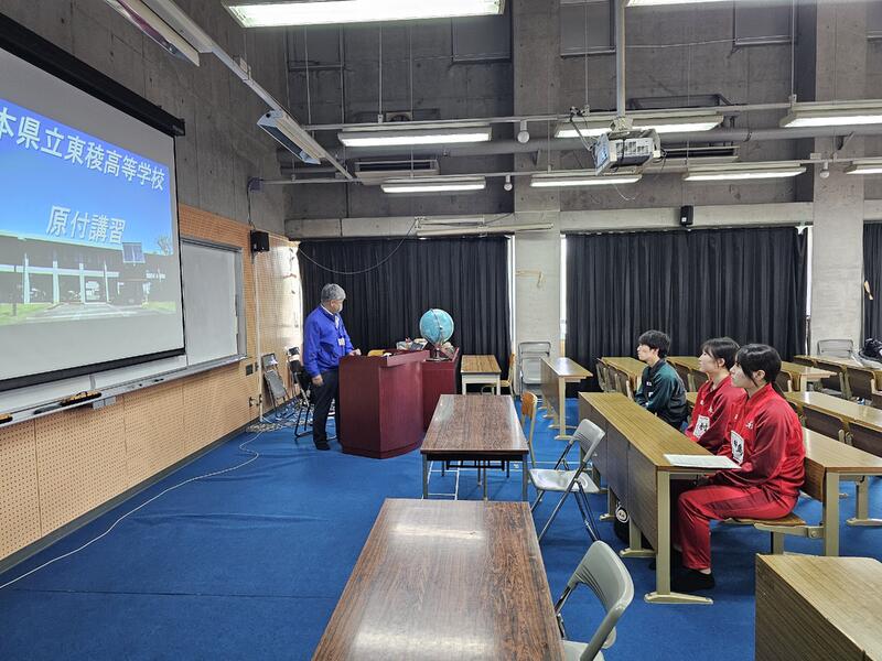 4月2日(木)、今年度から原付通学を始める生徒を対象に講習会を実施しました。講習会では、KDS(熊本ドライビングスクール)より講師をお招きし、座学において原付を運転する際の心構えや交通ルールについて学びました。