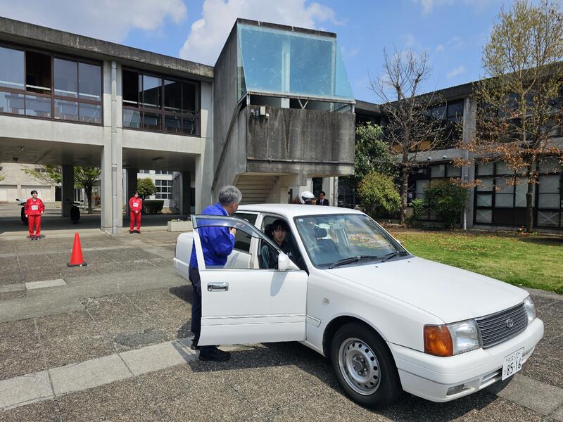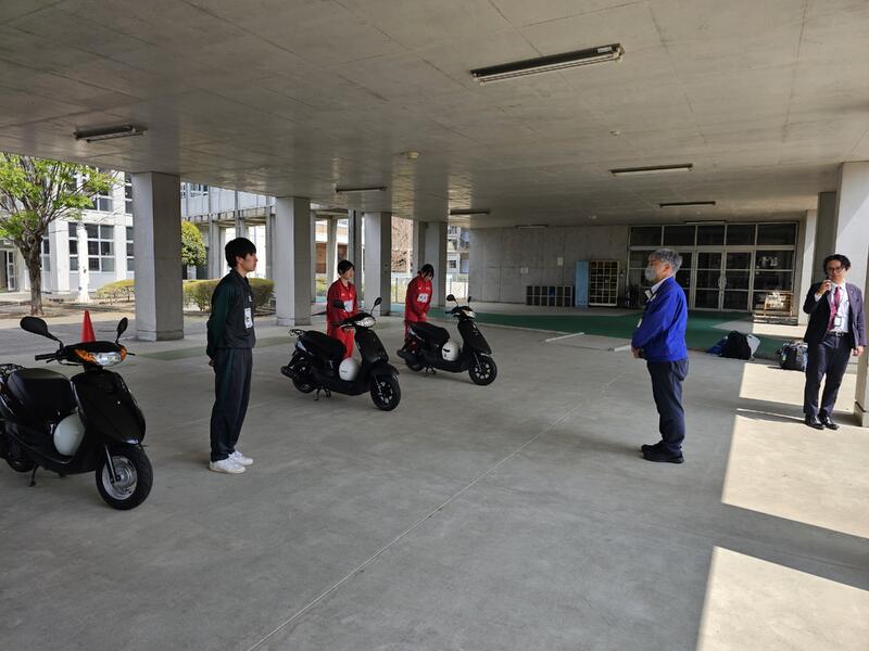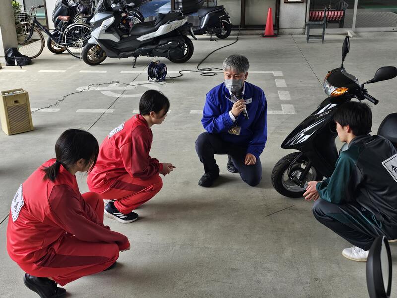 また、実技では原付の点検方法や発進・停止、交差点での曲がり方など、基本的な運転技能についてご指導いただきました。さらに、自動車の死角についても学び、安全に登校するための意識を高める機会となりました。