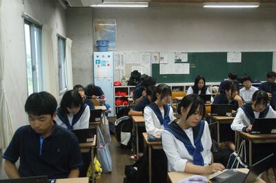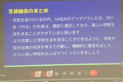 各委員会の報告が終わるごとに、生徒はタブレットでアンケートに回答しました。