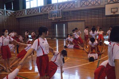 雨天のため、男女とも体育館での練習となりました。