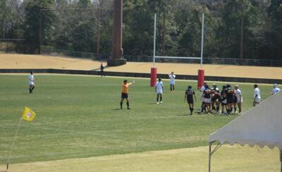 写真1番上 vs福岡合同 前半6分のトライの直後(白のユニフォームが熊本合同Aです。)