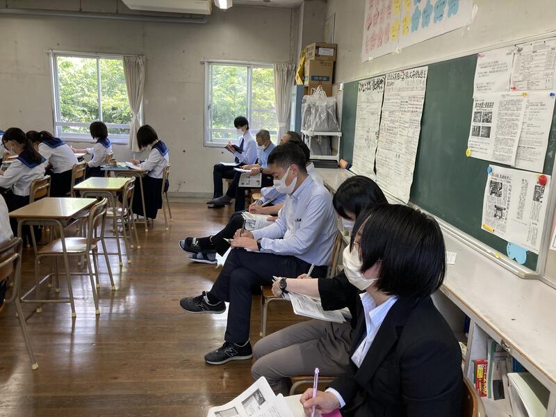 多くの先生方が見守る中、生徒たちは落ち着いて授業を受ける様子が見られました。