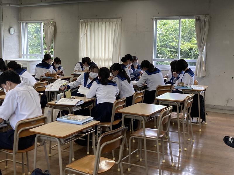 生徒たちはしっかりと考え、板書や考えをプリントに記入していました。