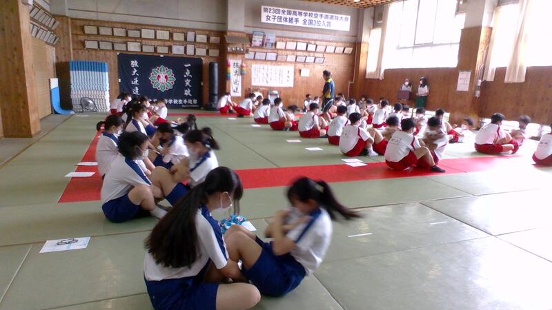 6月3日(金)~4日(土)、熊本公徳会武道場「振武館」にて百人一首かるた大会が行われ、本校から2年生4名、1年生1名でチームを組み出場しました。会場の静かな気迫と緊張感に少しずつ慣れていき、充実した時間を過ごすことができました。