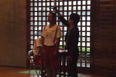 あいにくの雨のため、新体力テストは屋内種目のみ行いました。