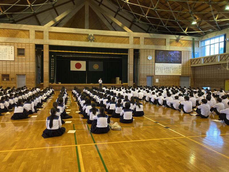 総合体育大会・文化祭を経て、3年生の受験に向けた活動が本格化する前に、主幹教諭の岡本先生より講話をいただきました。前半ではご自身の受験体験を語っていただき、後半では生徒たちが抱える悩みを聞き解決策を一緒に考えていただきました。