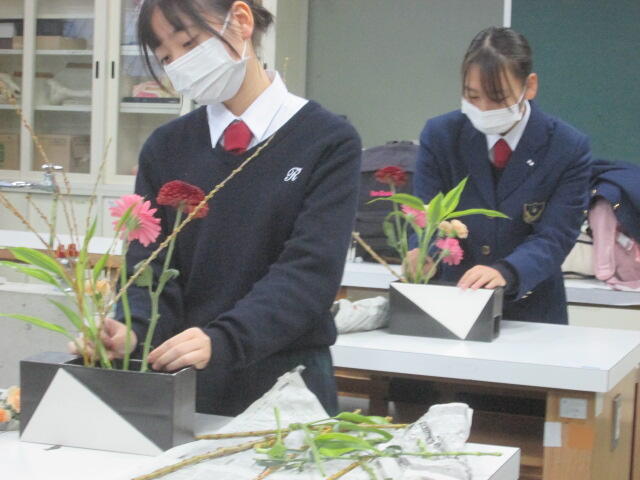 11月10日(水)華道部の活動です。松井先生、生田先生の御指導のもと、生徒2名で頑張っています。華道では、「生命への共感・生命を感じる心」「季節を感じる心」「目に見えないものを感じる心」の育成を目指しています。