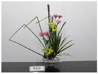 外部講師の先生から花材の特徴や生け方の例を説明していただき、それぞれ生けました。