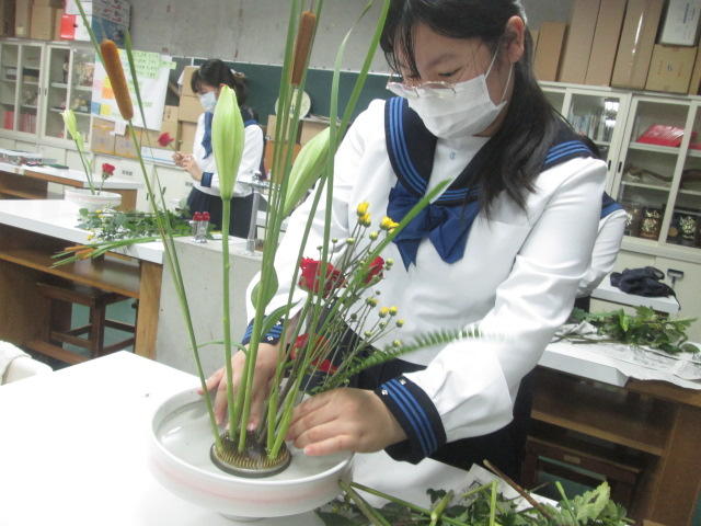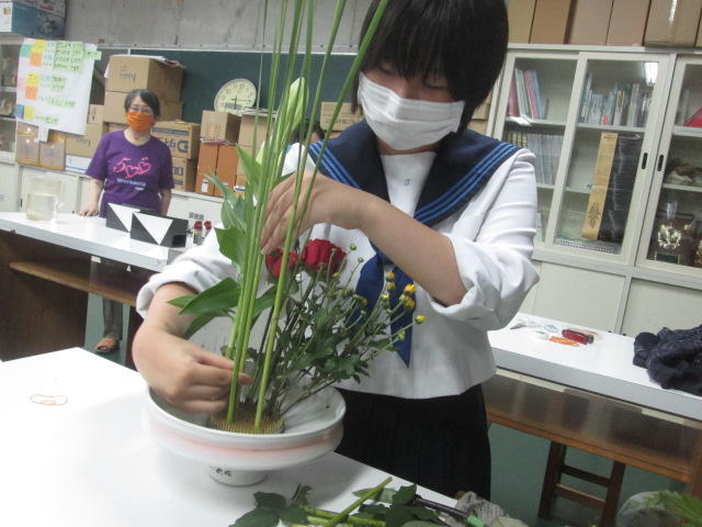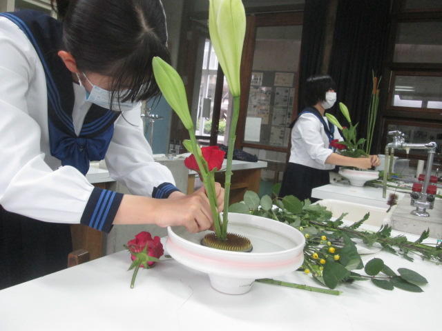 7月15日(水)華道部の活動です。3名で頑張っています。