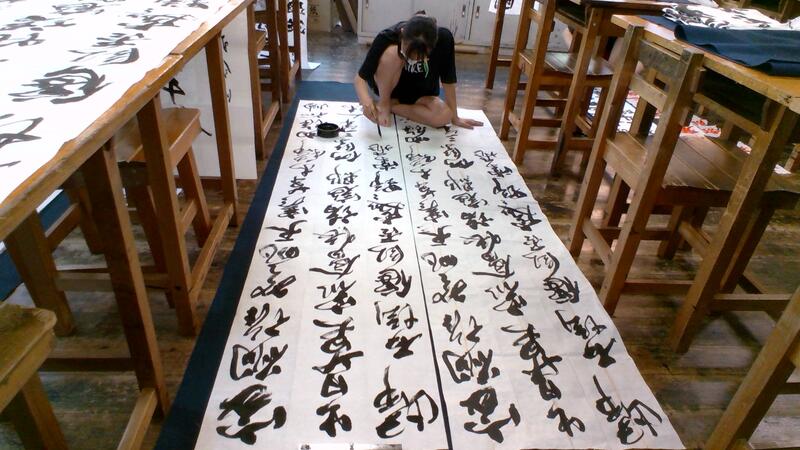 書道室では書道部の生徒たちが作品制作に向けて練習を行っていました。