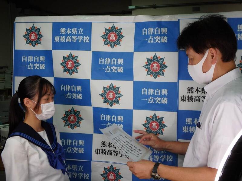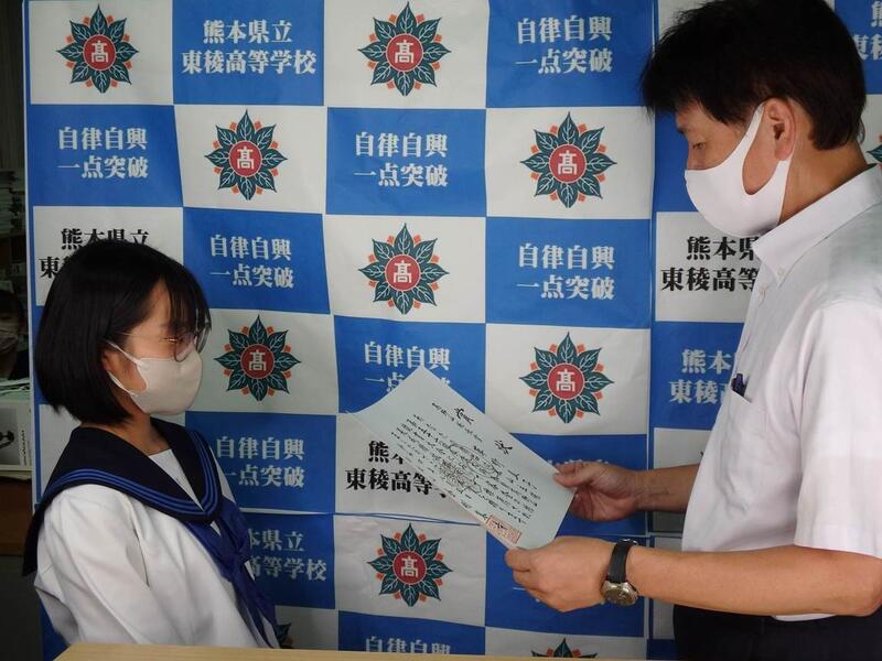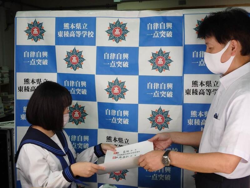 県下の書道を学ぶ高校生が一同に会し技を競う揮毫大会が宇土市民体育館で行われました。コロナ禍で二年ぶりの開催となり、会場は静かな熱気とサラサラする紙の音のみ、120分の緊張を乗り越え力を出しきりました。
