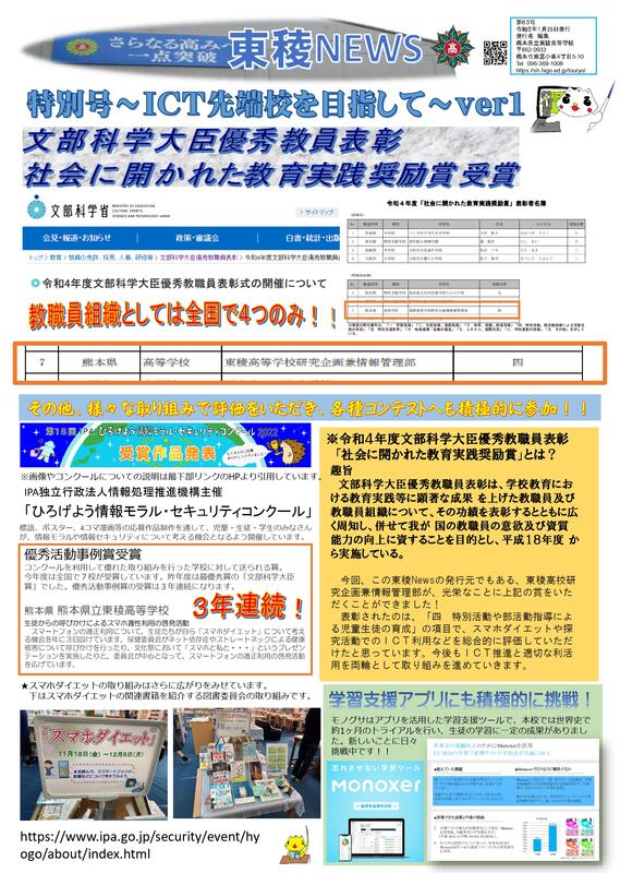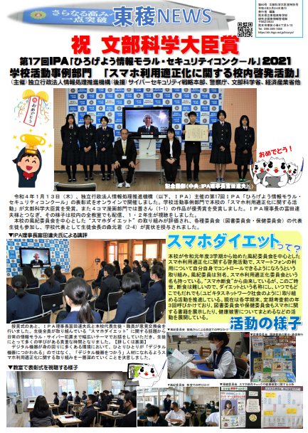 本校の教育活動の様子をまとめている東稜NEWS(年2回発行)です! 中学生の皆さん、是非ご覧下さい 東稜NEWS第69号 東稜NEWS第68号 東稜NEWS第67号 東稜NEWS第66号 東稜News第65号シチズンシップ教育号.pdf 東稜NEWS第64号.pdf 東稜NEWS第63号.pdf 東稜NEWS第61号(R4.6).pdf 東稜NEWS第60号(R4.3)文部科学大臣賞特別号.pdf 東稜NEWS第59号(R3.12).pdf 東稜NEWS第58号(R3.6).pdf 東稜NEWS第57号(R2.11).pdf
