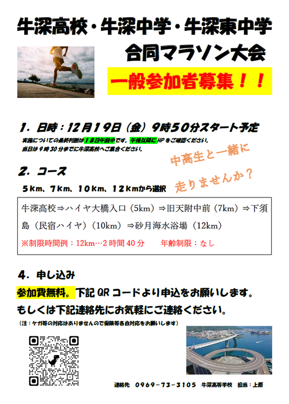 12月19日(金)に牛深高校・牛深中学・牛深東中学合同マラソン大会を開催します。