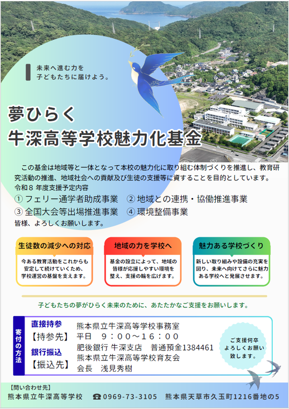 教育研究活動の推進、地域社会への貢献及び生徒の支援等に資することを目的とした基金です。