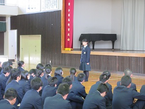 校長講話では、今年のキーワードである「挑戦(チャレンジ)」についてお話をされました。