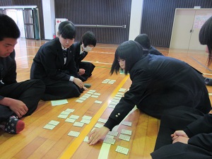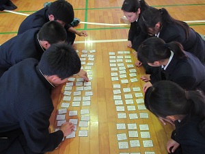3月22日(火) 平成27年度校内百人一首大会が行われ、1回戦は源平戦、2回戦はちらし取りで行いました。