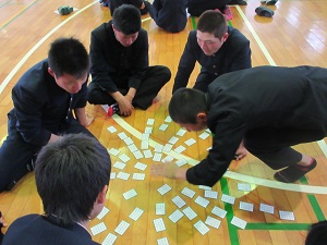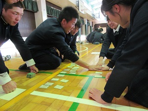 百人一首という日本のよき伝統文化に触れるとともに、クラスマッチ形式にもなっており、クラスの団結も見られました。結果は、修了式で発表予定です。