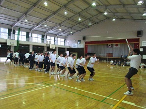 はじめに、生徒会企画で長縄があり、3分間で連続で跳んだ数を競いました。普段、練習しない長縄ですが、少しの練習で跳べる回数が増えました。