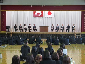 今回の人事異動により、お1人の先生がご退職、10名の先生が転勤されることとなりました。1年間~7年間、牛深高校を支えていただいた先生方に感謝するとともに、次の赴任先でもご活躍されることを生徒・職員・卒業生一同願っています。