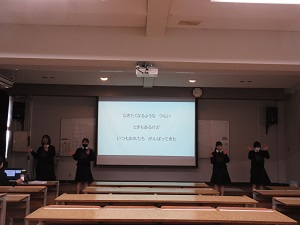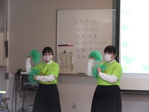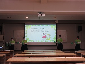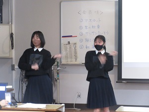 12月21日(月)、3年次「子ども文化」選択者によるダンス発表会が行われました。「園児と一緒に踊るなら」をコンセプトに5つのグループに分かれて創作ダンスに取り組みました。選曲、振付、映像、衣装も自分たちで製作に取り組み、楽しい発表会になりました。