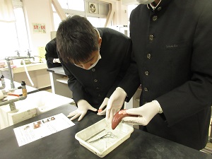 2年次選択「生物」では、腎臓の仕組みを観察しました。
