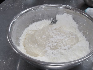 力の要る作業。何度も繰り返すと、よくのびるお餅に。