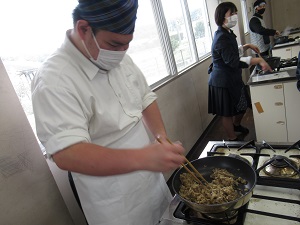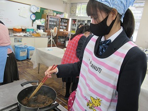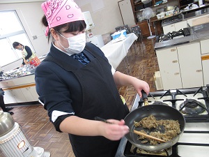 3年次「食文化」の授業では、先日のみそ玉で作ったみそ汁作りのだしに使用した削り節を使って、ソフトふりかけを作りました。