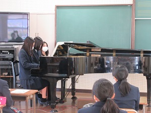 「器楽」は、2・3年次の継続履修科目となっており、2年間の学びの成果として、ピアノのソロ演奏や連弾を披露しました。