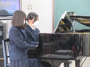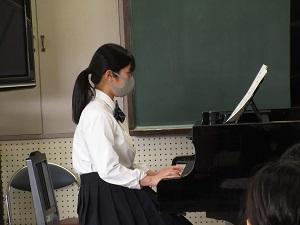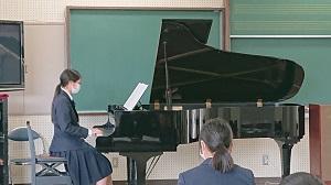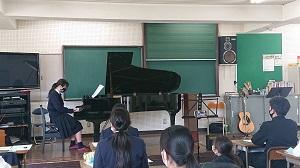 3月22日(月)、2年次器楽選択者による「期末演奏会」が開かれました。9名がピアノ独奏やギターの弾き語りを披露しました。緊張で手が震えながらも最後まで自分の音楽を奏でました。