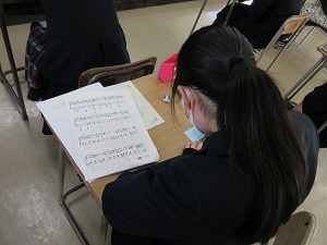 3年次生が全員登校する日も残りわずかとなりました。音楽では、2つの卒業演奏会が開かれました。先生方や同級生を前に、少し緊張した様子でしたが、最後まで一生懸命に発表しました。