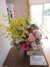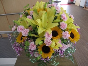 「お花は心の栄養源~新型コロナウイルスの影響が続いていますが、少しでも明るい気持ちになれますように。こんな時こそ、お花で心豊かに。~」とメッセージが添えられています。生徒玄関に飾っています。この度は、ありがとうございました。