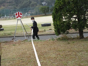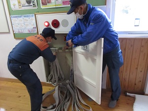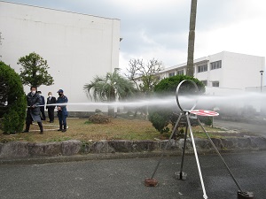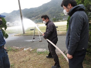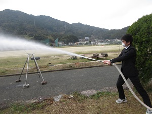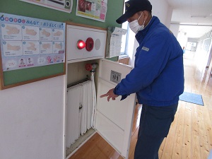 天草広域連合南消防署の方から屋内消火栓(1号消火栓)の使用法について教えていただきました。